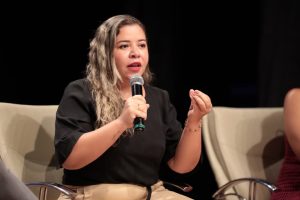 No primeiro dia, realizado no IRDEB – Cineteatro 2 de Julho, o Painel II – Ética, Legislação e Conduta Profissional (LAI, ECA e Lei de Abuso de Autoridade) contou com apresentação conjunta da presidenta do Sinjorba, Fernanda Gama, e do diretor de Finanças da entidade e vice-presidente da Fenaj, Moacy Neves.